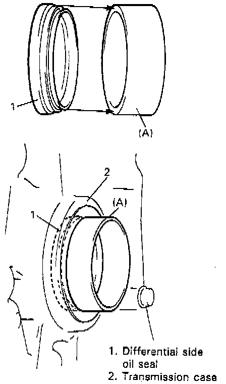 NOTE: For oil seal installation, press-fit oil seal so that transmission case end face is flush with oil seal end face.