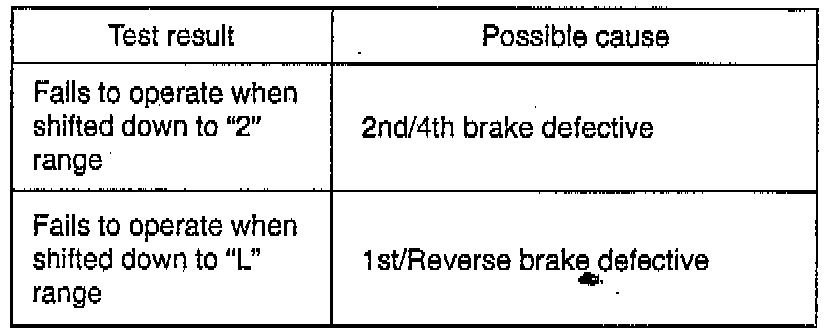 2. In the same way as in Step 1, check engine brake for operation when select lever is shifted down to "L" range.