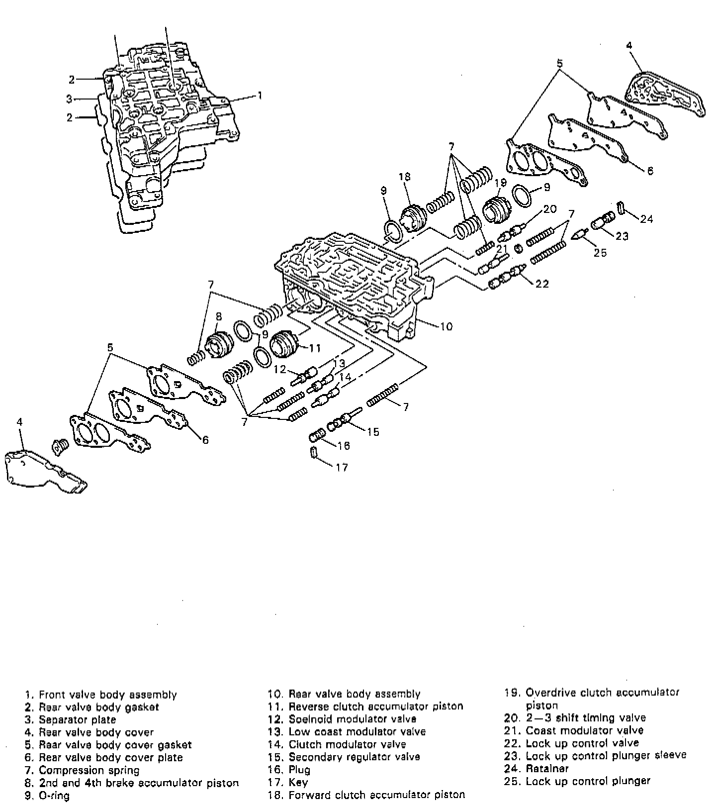 6. Remove rear valve body gaskets and separator plate together with rear valve body.