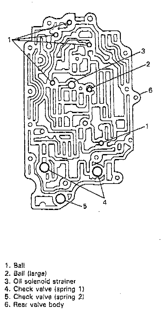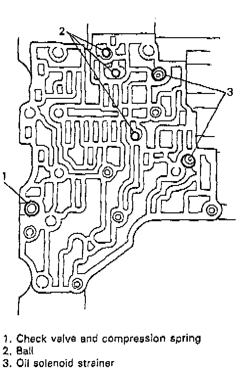 7. Remove six balls, oil solenoid strainer and check valves and compression springs.