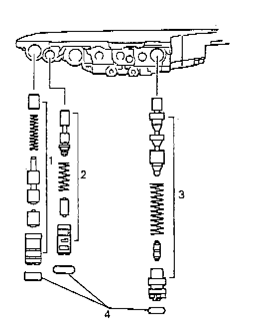 12. Remove check valve, compression spring, three balls and oil solenoid strainers.