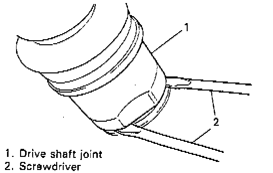 8. By using large size screwdrivers, pull out drive shaft joints at differential side so as to release snap ring fitting of joint. (for LH drive shaft).