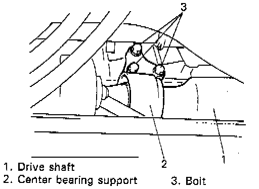 9. Remove center bearing support bolts and pull out center drive shaft from differential gear. (for RH drive shaft).
