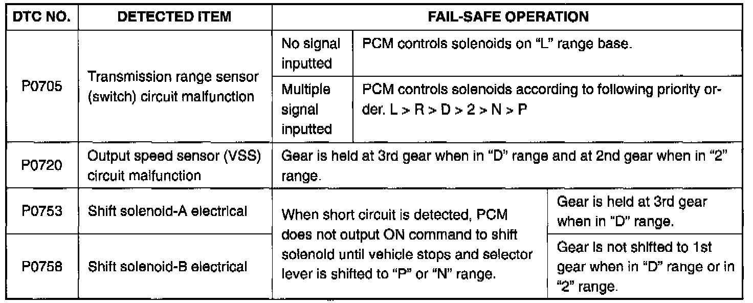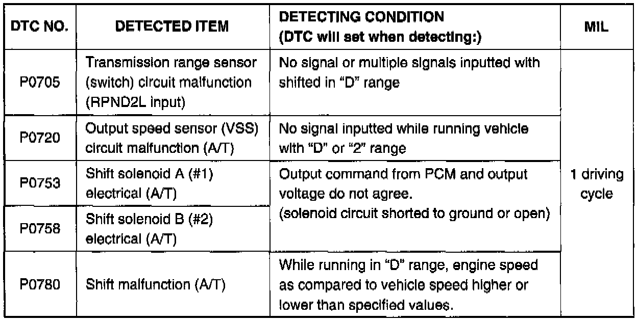 DIAGNOSTIC TROUBLE CODE TABLE