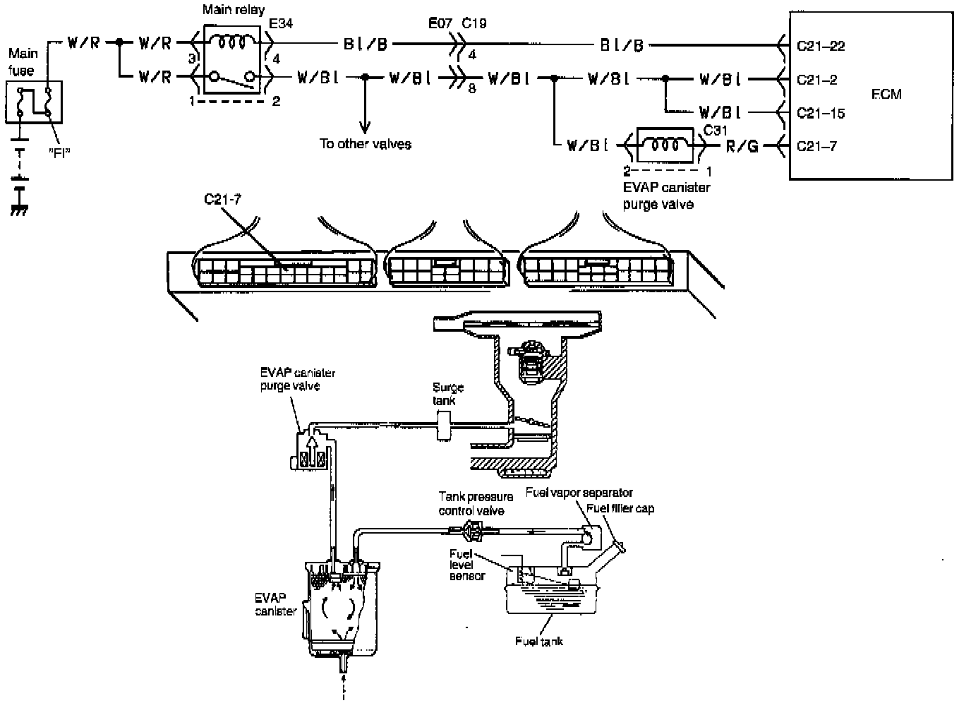 FOR VEHICLE NOT EQUIPPED WITH TANK PRESSURE CONTROL SOLENOID VACUUM VALVEWIRING DIAGRAM