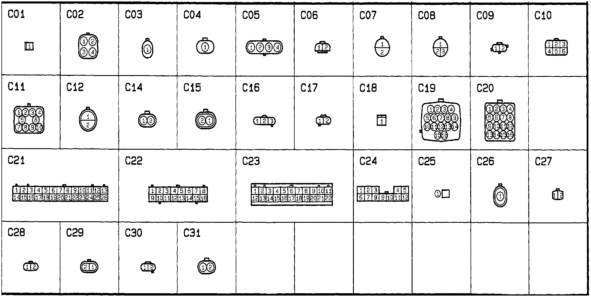 C Connectors - C01 To C31: