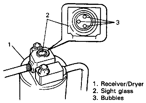 Run engine at fast idle, and operate A/C at its max. cooling capicity for a few minutes. Then look at the sight glass on reciever/dryer to check charge of refrigerant.