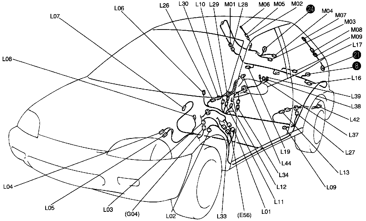 Floor, Rear Sensor, Fuel Gauge Wire, Hatch Door, Rear Defogger Wire Harness: