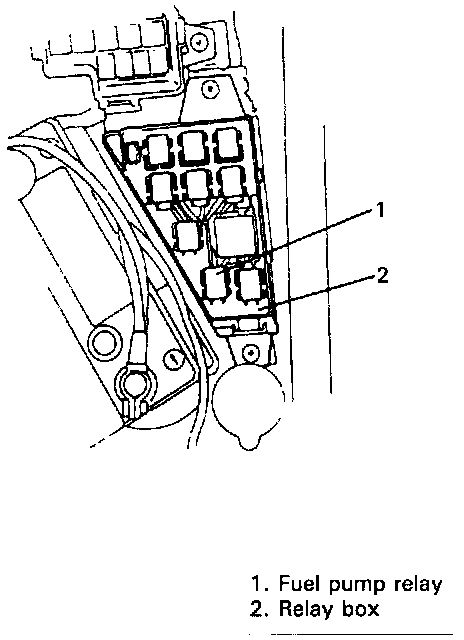 6. Upon completion of servicing, connect fuel pump relay to relay box and install relay box cover.