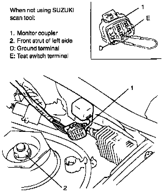 - After checking and/or adjusting Initial Ignition Timing, release ignition timing fixation by SUZUKI scan tool or disconnect service wire from monitor coupler.