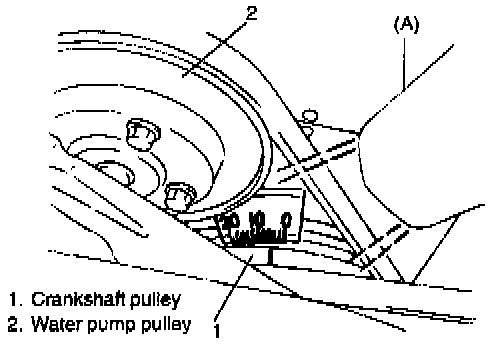 - With engine idling (test switch terminal ungrounded, CTP switch ON and car stopped), check that ignition timing is about 8°BTDC. (Constant variation within a few degrees from 8° indicates no abnormality but proves operation of electronic timing control system.) Also, check that increasing engine speed advances ignition timing.