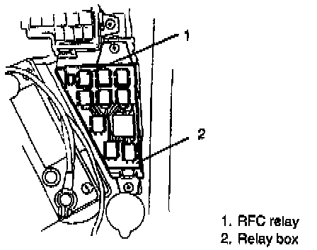 1. Disconnect negative cable at battery.2. Remove radiator fan relay from relay box.