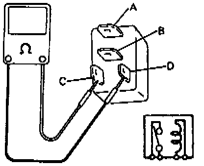 4. Check that there is continuity between terminals "A" and "B" when battery is connected to terminals "C" and "D." If found defective, replace.