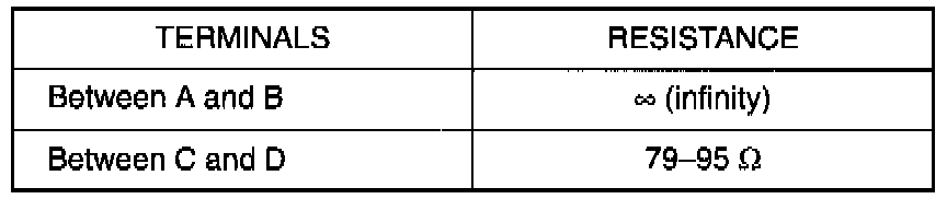 3. Check resistance between each two terminals as in table above. If check results are as specified, proceed to next operation check. If not, replace.