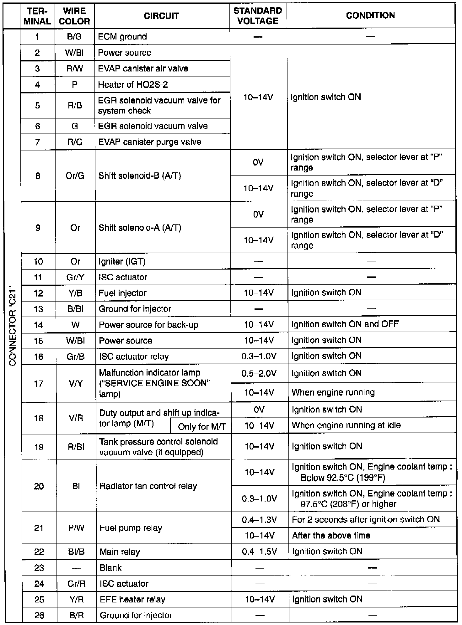 NOTE: As each terminal voltage is affected by the battery voltage, confirm that it is liv or more when ignition switch is ON.