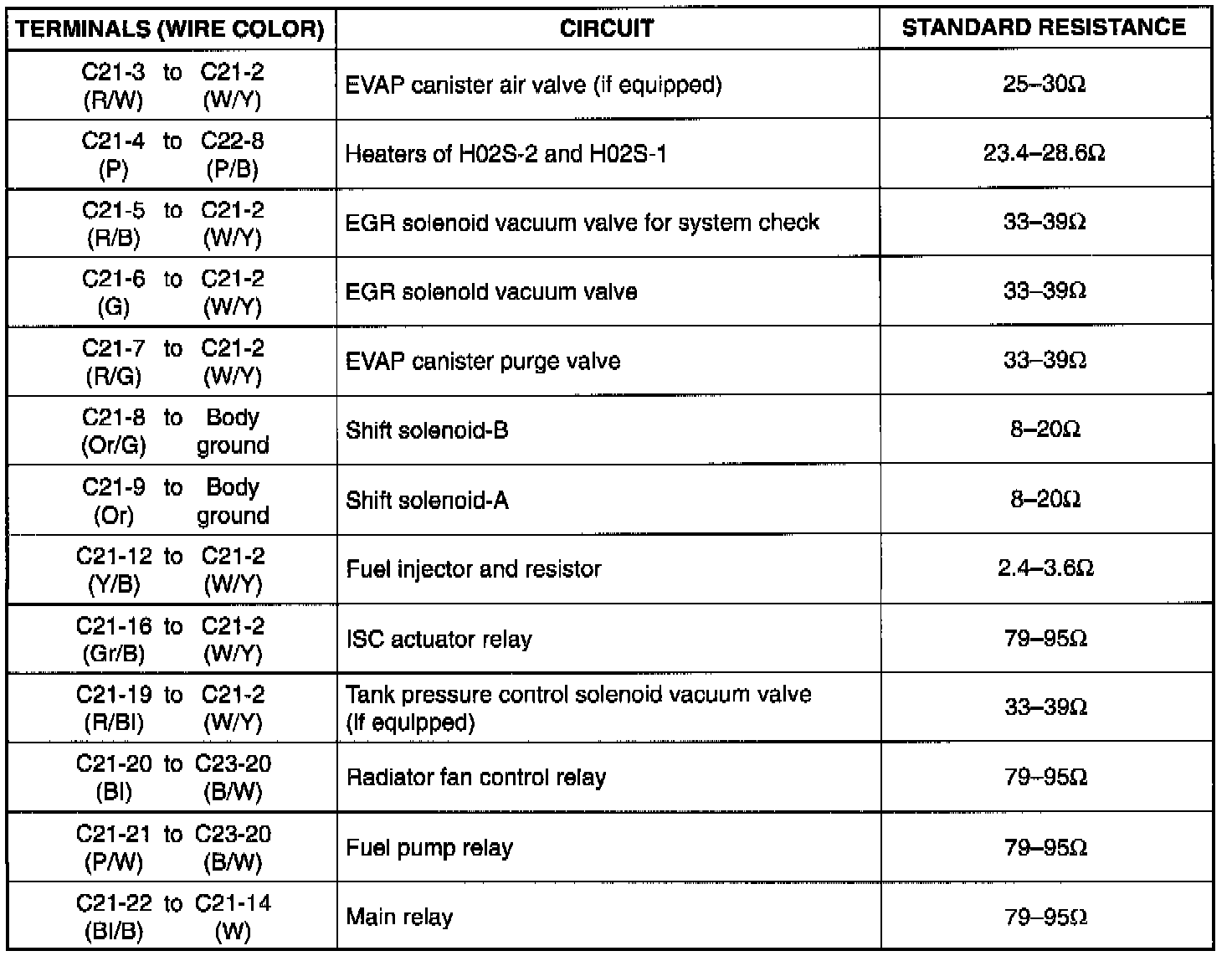 - Resistance in table below represents that when parts temperature is 20°C (68°F).