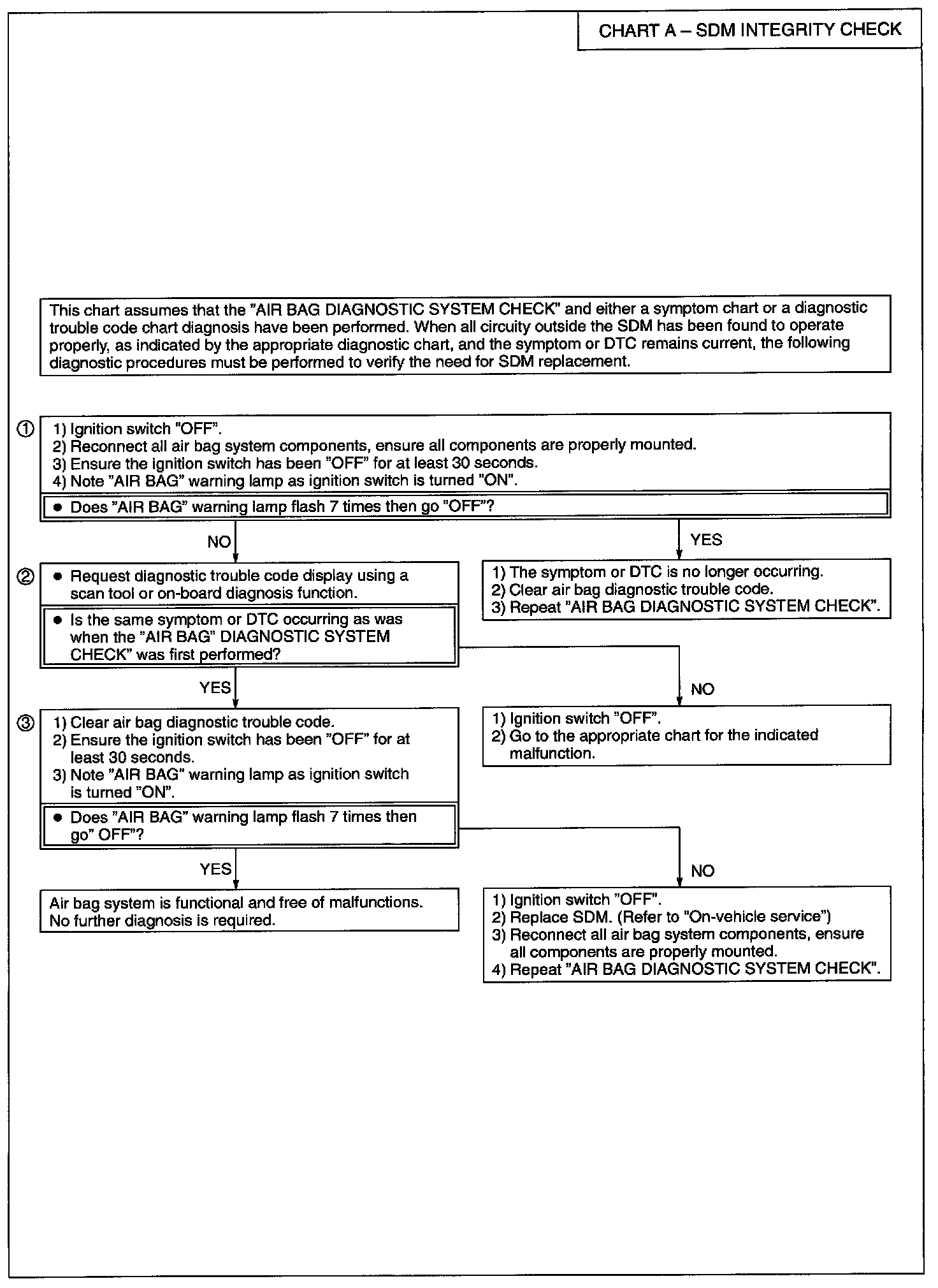 3) When all circuitry outside the SDM has been found to operate properly, as indicated by the appropriate diagnostic chart, then and only then should the SDM be replaced.