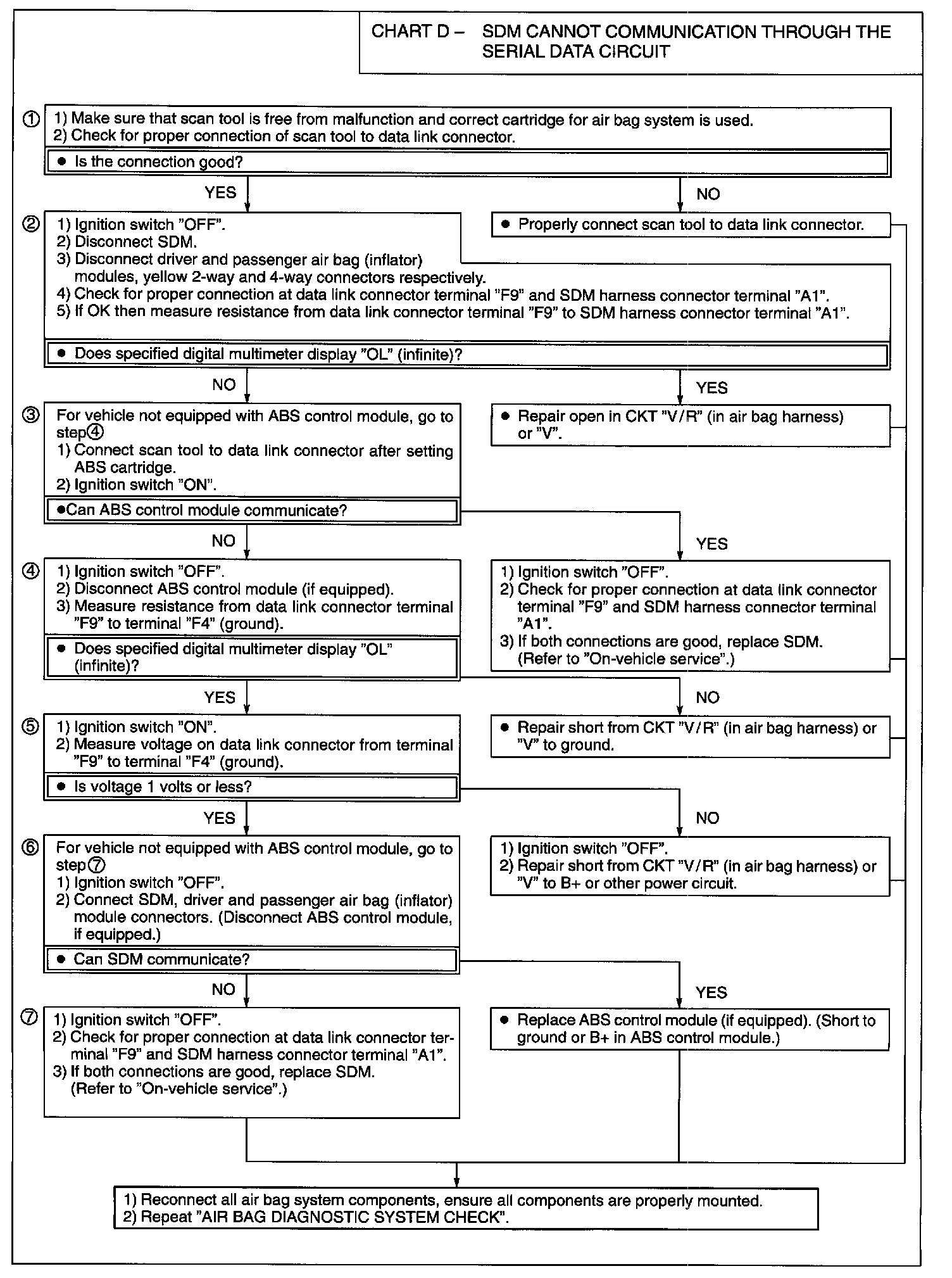 3) This test checks whether an abnormality is in SDM or in any other part. Once the integrity of the "Serial Data" circuit including proper connections has been confirmed and ABS control module can communicate, the SDM must be malfunctioning.