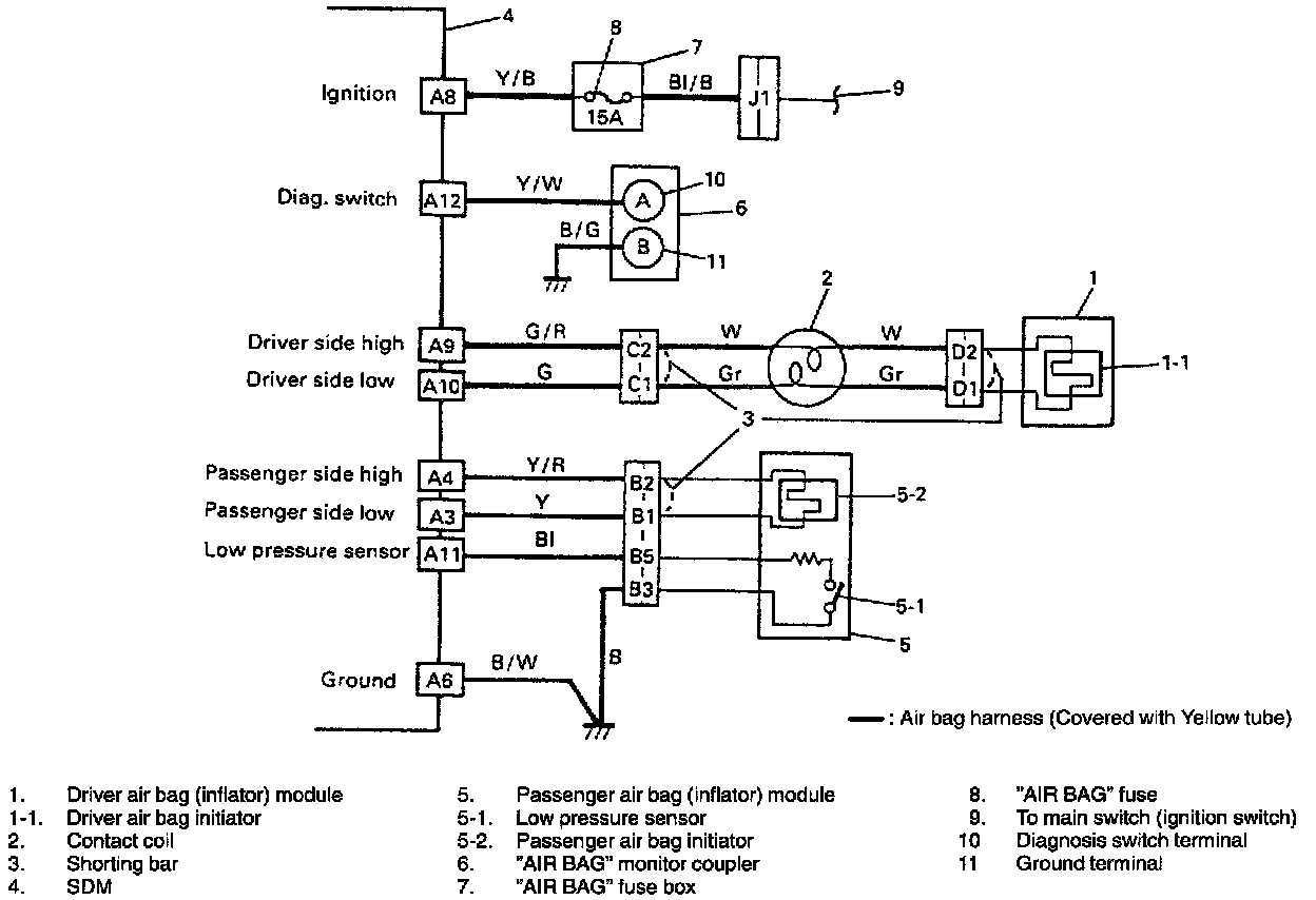 - When an open in air bag wire harness, damaged wire harness, connector or terminal is found, replace wire harness, connectors and terminals as an assembly.