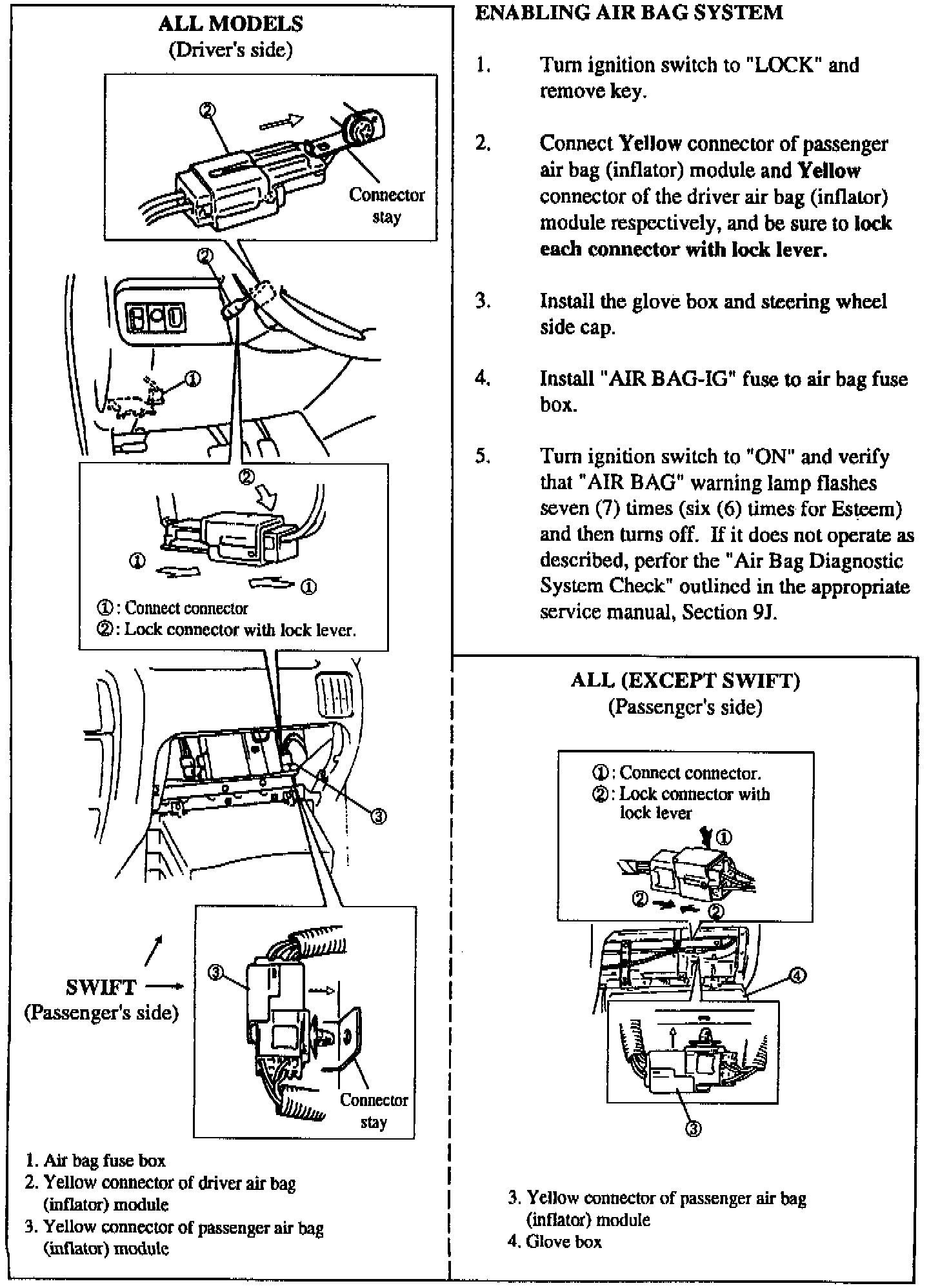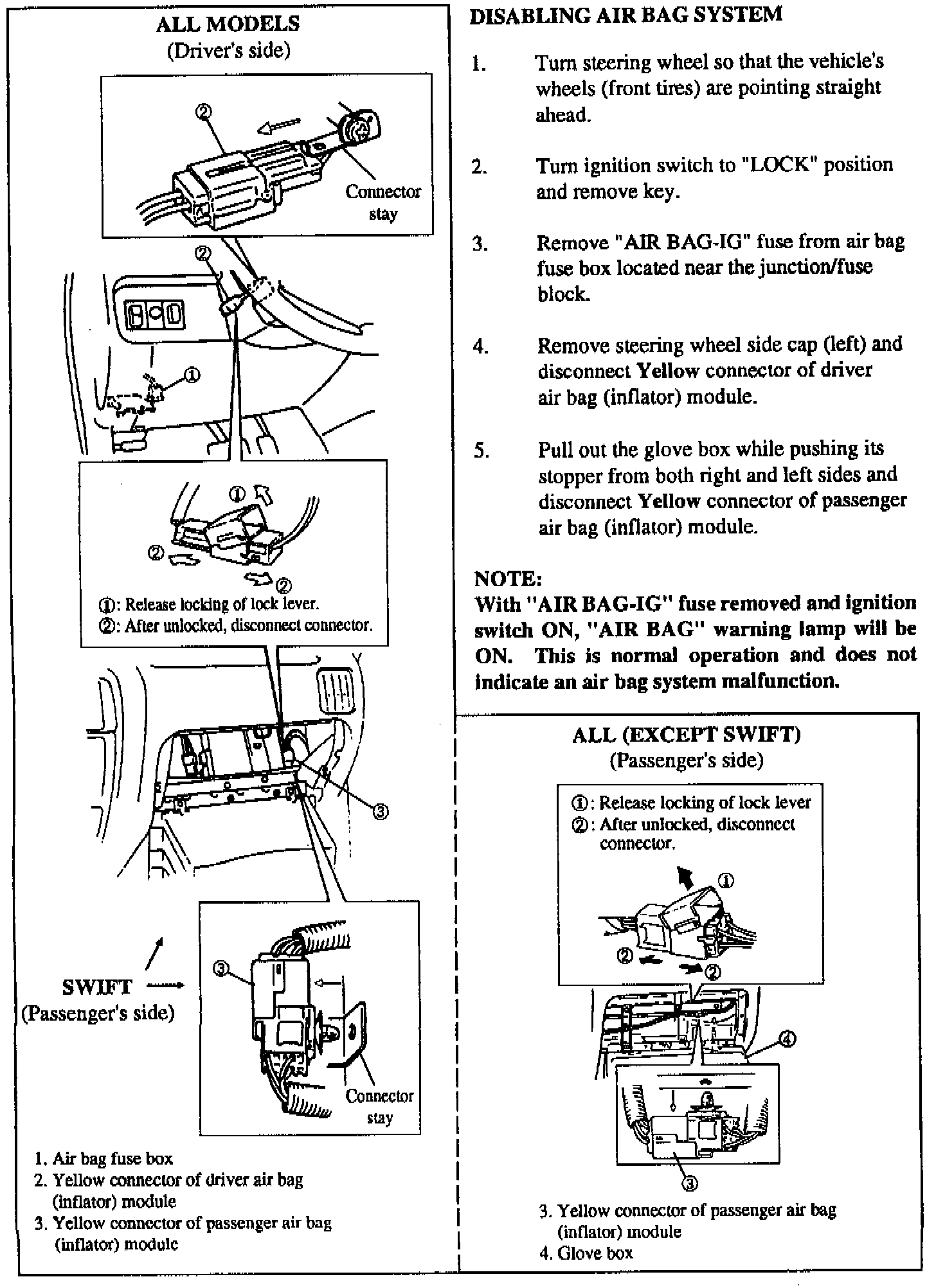 AIR BAG SYSTEM ENABLE/DISABLE PROCEDURE