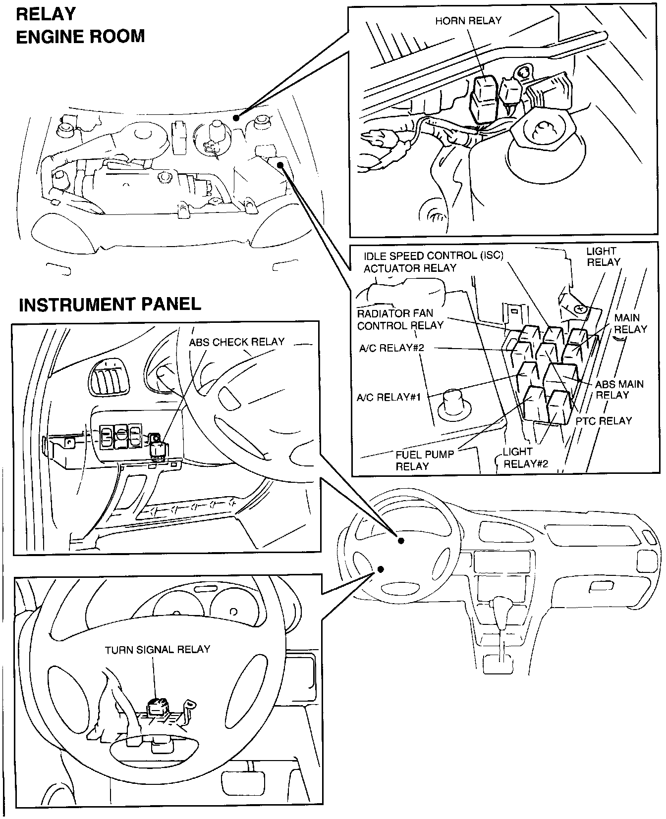 The diagrams in Installation Position of Single Unit Parts shows installation position of fuse, relay and control units used in this vehicle. They are illustrated in the image.