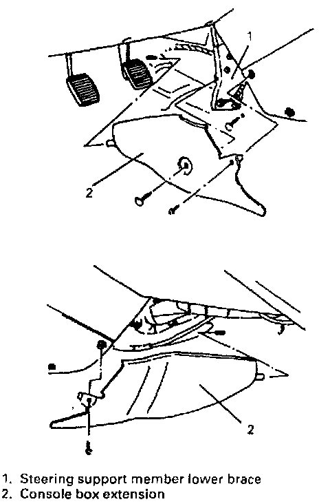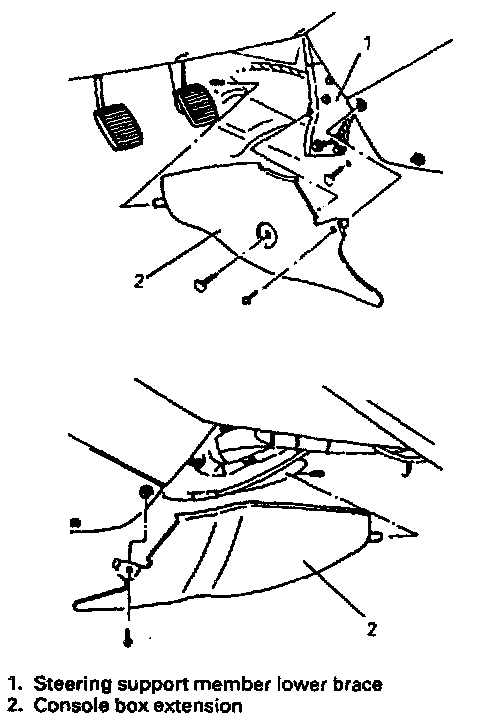 4) Remove 4 bolts and steering support member lower brace.