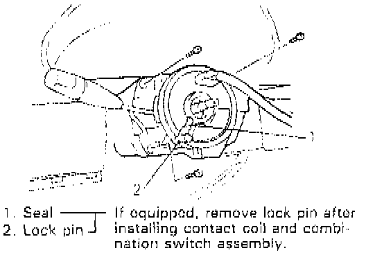 NOTE: New contact coil and combination switch assembly is supplied with contact coil set and held at its center position with a lock pin and seal. Remove this lock pin after installing contact coil and combination switch assembly to steering column.