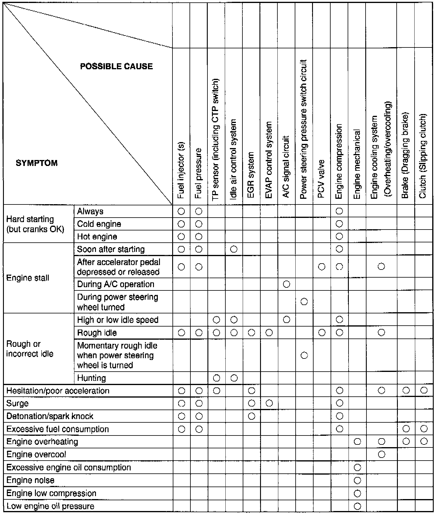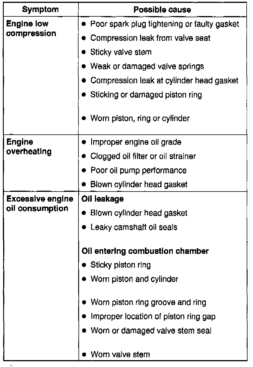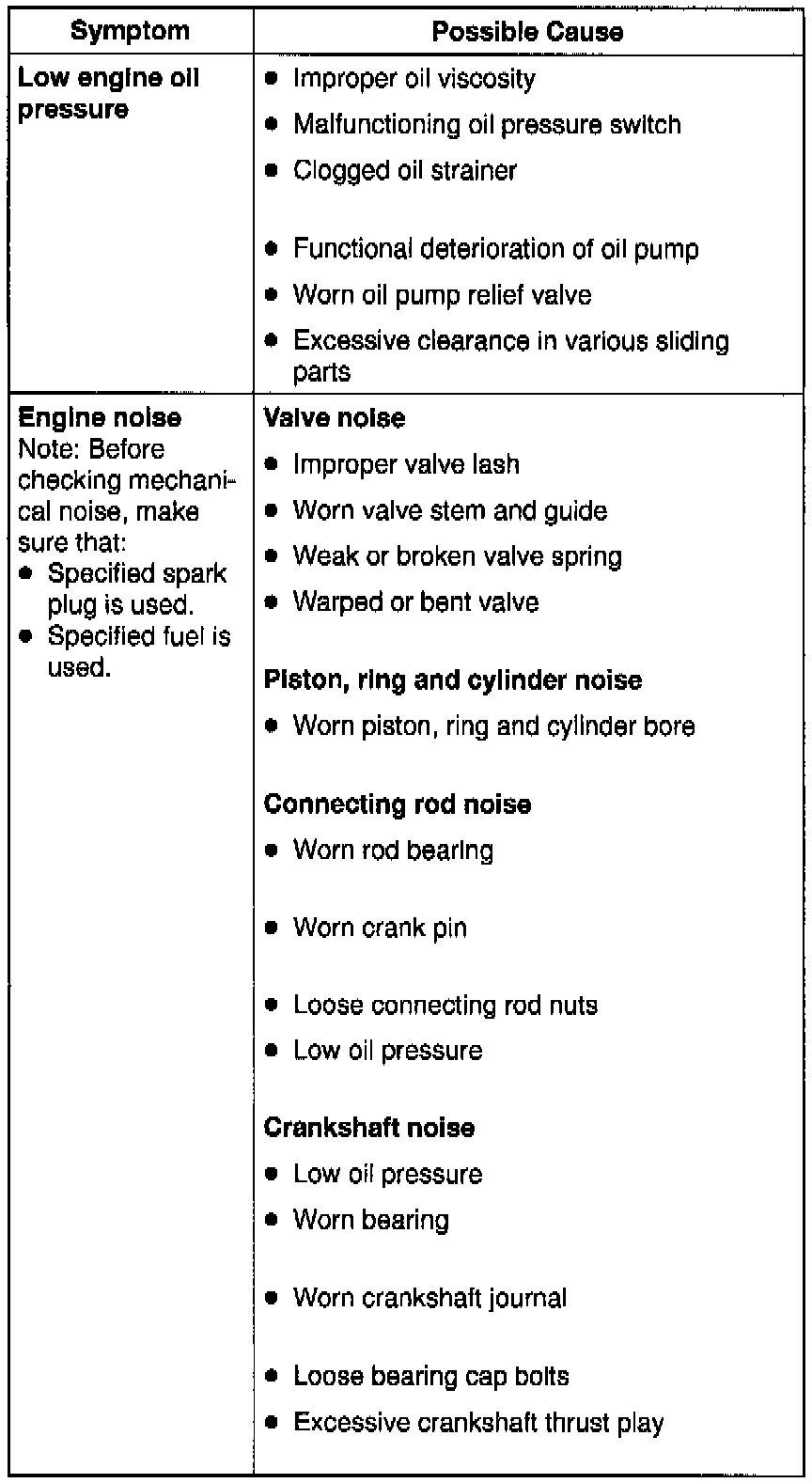 ENGINE MECHANICAL DIAGNOSIS TABLE