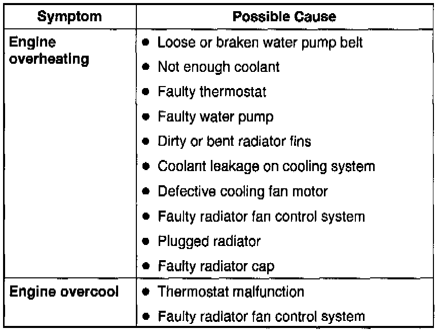 ENGINE COOLING SYSTEM DIAGNOSIS TABLE