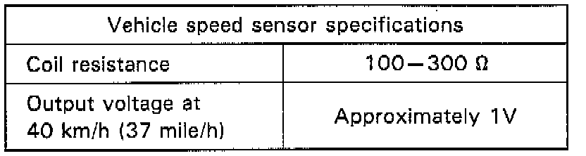 Separately from the above inspection, vehicle speed sensor itself can be checked on its resistance by disconnecting coupler.