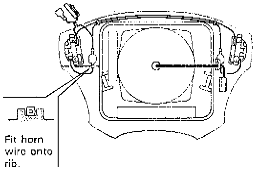 1. After making sure that wire harness at the back of air bag (inflator) module is arranged as shown in figure, install air bag (inflator) module to steering wheel, taking care so that no part of wire harness is caught between them.