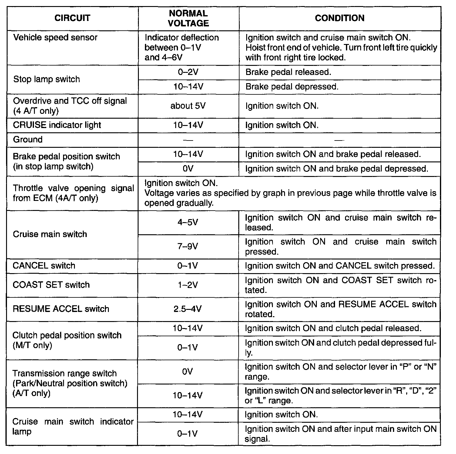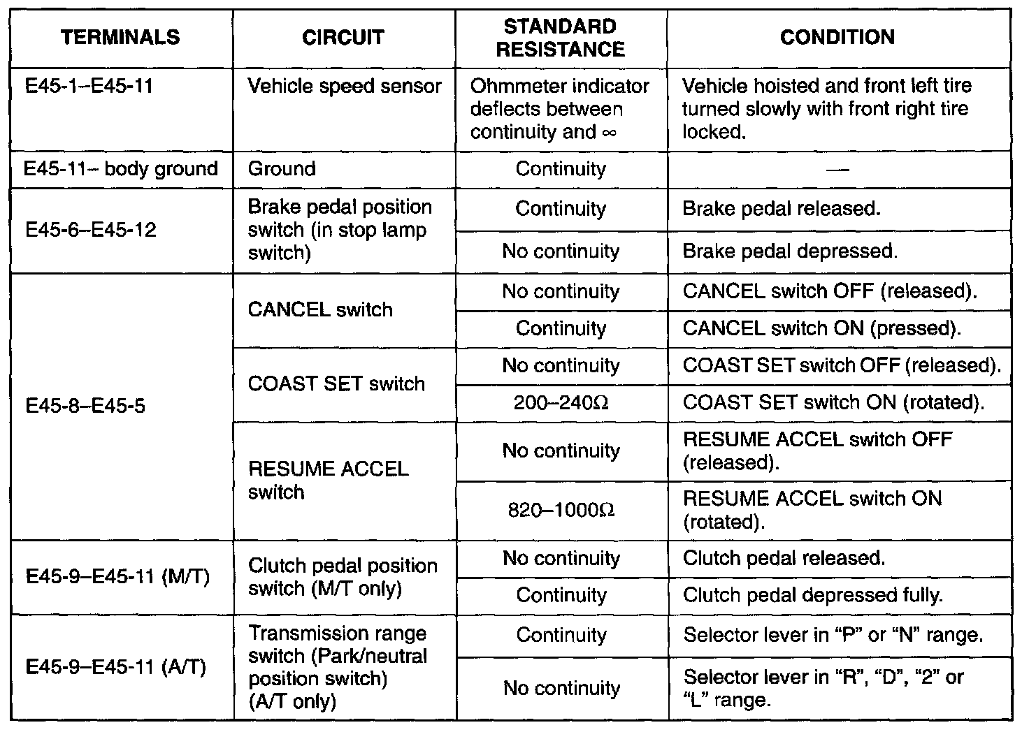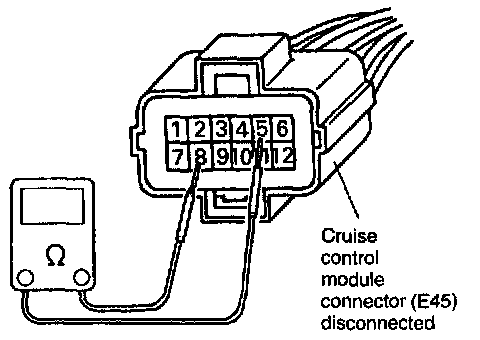 - Never touch terminals of cruise control module itself or connect voltmeter or ohmmeter.