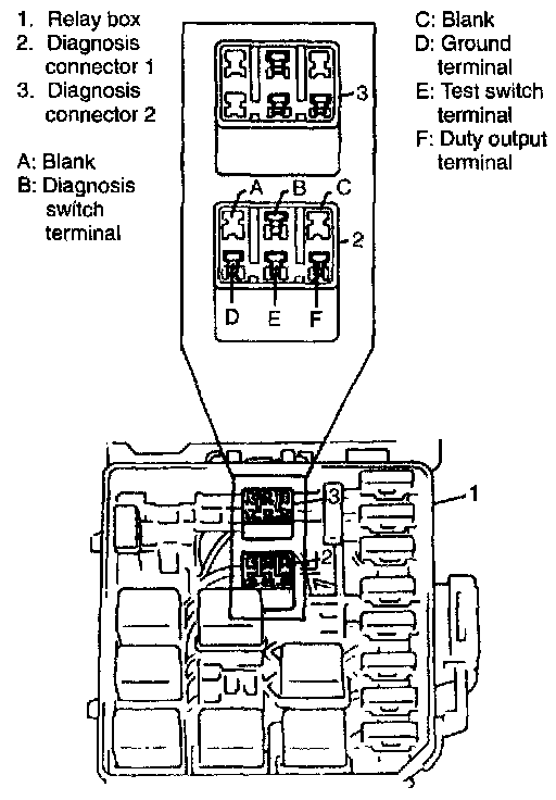 The test switch terminal is included in the diagnosis connector 1 in relay box.