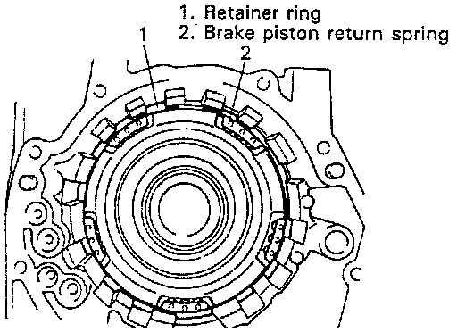 14. Install retainer ring by compressing brake piston return spring with flat drivers or the like.