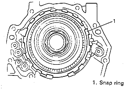 NOTE: Make sure that opening end of snap ring should be aligned with protrusion of transmission case.