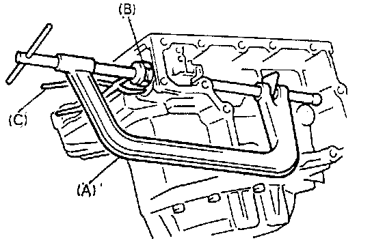 (9) Hook push-pull gauge or the like in bolt hole section of transmission case.