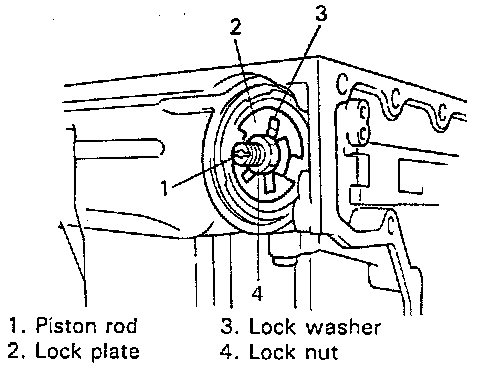 24. Temporarily install piston rod with lock plate, new lock washer and lock nut to transmission case.