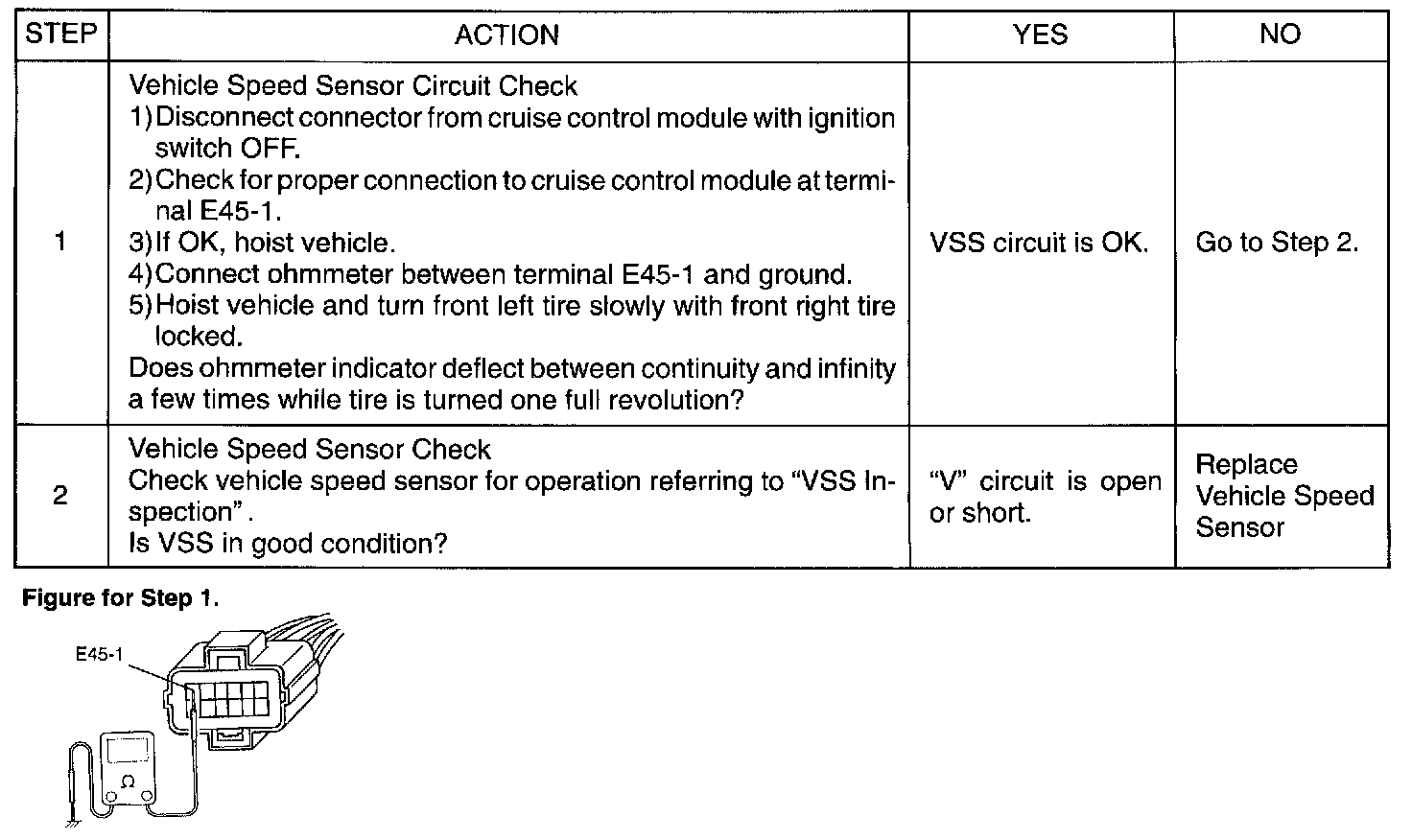 Vehicle Speed Sensor/Transducer - Cruise Control: Testing and Inspection