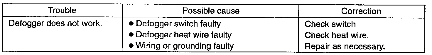 REAR WINDOW DEFOGGER (If equipped)The rear window defogger system has horizontal ceramic silver compound elements and two vertical bus bar. The system is operated by the defogger switch in the instrument panel.