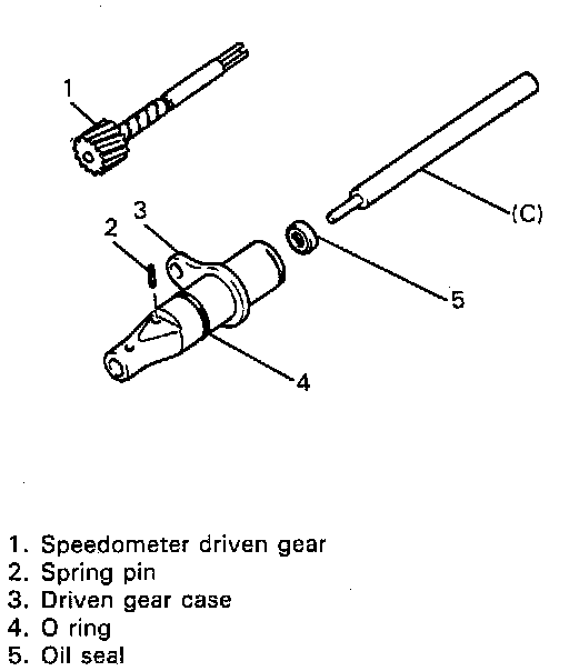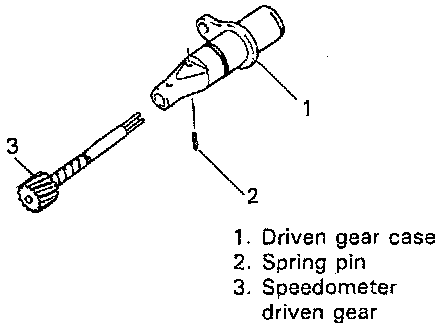 3. Using pin remover of 2.8 - 3.0 mm (0.11 inch) diameter, drive out spring pin and then take out speedometer driven gear.