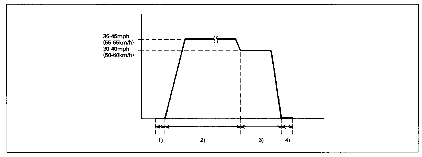 2. Start engine and drive vehicle at 35 - 45 mph, 55 - 65 kph for 8 min. or longer.