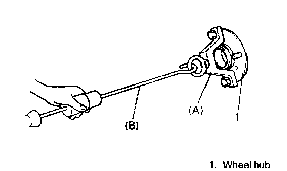 ^ When installing spindle cap, hammer lightly several locations on the collar of cap until collar comes closely into contact with wheel hub.