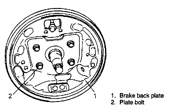2. Install brake back plate and tighten back plate bolts to specified torque.
