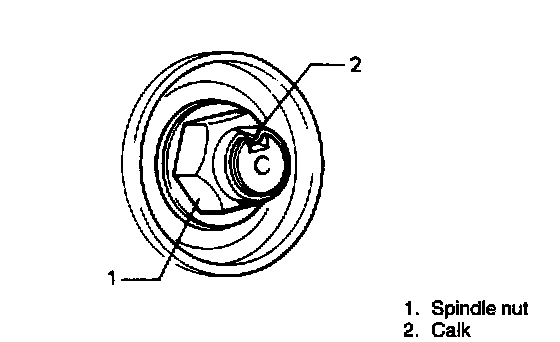 3. Uncalk spindle nut and remove spindle nut and washer.