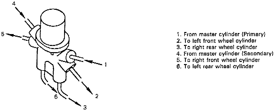 The proportioning valve is included within the brake circuit which connects the master cylinder and the wheel brakes. It is installed on dash panel under engine hood and controls the hydraulic pressure applied to the rear wheel brakes after predetermined pressure has been reached.