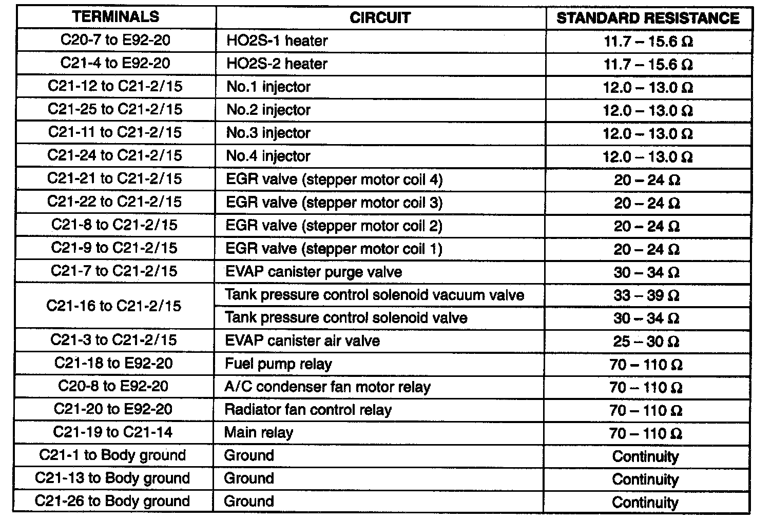 Connector C21 (Terminals 1 - 26):