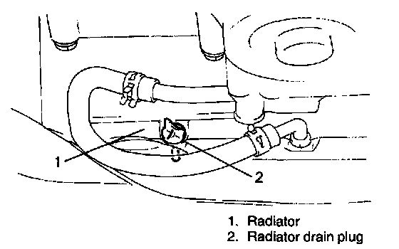 4. Close drain plug. Add water until system is filled and run engine until upper radiator hose is hot again.