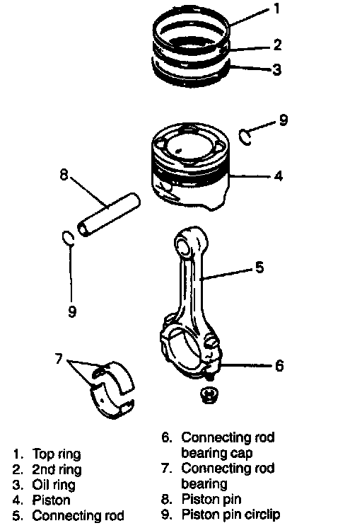 9. Push piston and connecting rod assembly out through the top of cylinder bore.