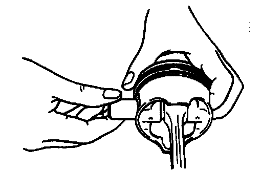 ^ Ease out piston pin circlips, as shown.