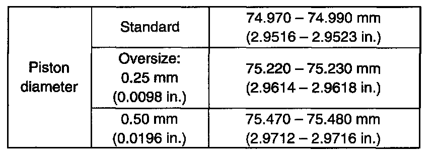 Cylinder bore dia. limit: 75.15 mm (2.9586 inch)